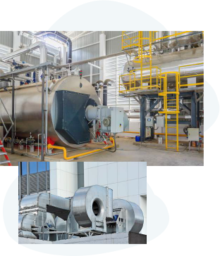 - Vapor, hot water, superheated water …, including the recovery systems (economizers)